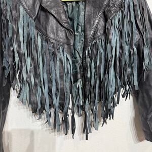 Vintage Black Leather Fringe Crop Moto Jacket Sz M