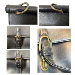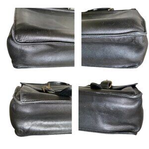 Vintage Full Grain Black Leather Hide Dowel Briefcase - Pre-owned