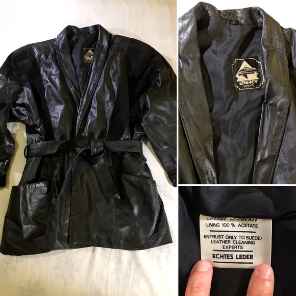 Size S-M vintage black leather jacket with tie belt closure. Half length sleeves. Super soft leather and suede make this loose fitting jacket extra touchable. Originally purchased in London. There are a few signs of wear and tear (pictured), but otherwise this jacket is in pretty good used condition.