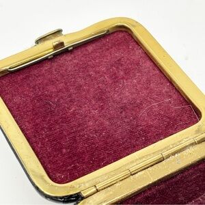 Vintage Black Leather Jewelry Trinket Hinged Box With Push Spring Button Square. Good pre-owned condition. See photos. All measurements are approximate.