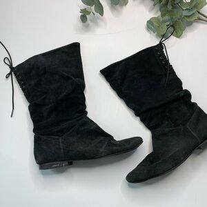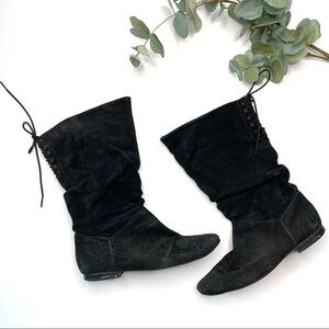 Vintage Black Leather Lace up Back Boots size 8
