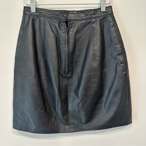 Sleek and sexy vintage black leather mini skirt. Modern and versatile. Ideal for any occasion. Back zipper and snap button, fully lined. Great condition.