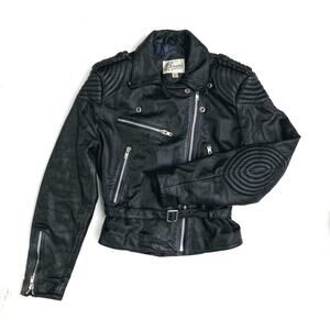 Vintage Black Leather Moto Jacket | Braided Quilted Shoulders 90s Biker Staple
