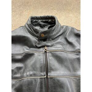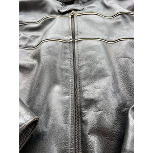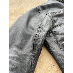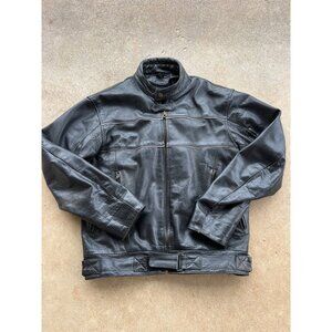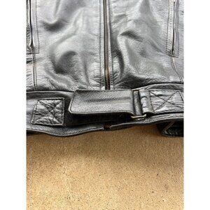 Vintage Black Leather Motorcycle Jacket With Zipper Front & Adjustable Waist K3