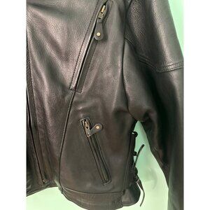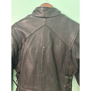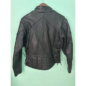 Vintage Black Leather Motorcycle Jacket With Zipper & Lace-Up Detailing Size M