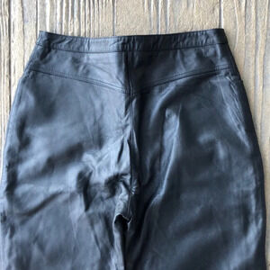 Good used condition women’s vintage Excelled leather pants. Size 8 Reg. Fully lined. Two button/zip front closure. Two front pockets. Relaxed fit with a tapered leg. Vintage sizing so please compare measurements