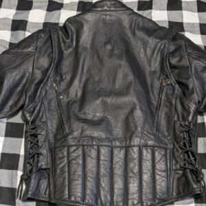 Leather patches in elbows and shoulders. Air vent zippers in front and back!