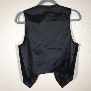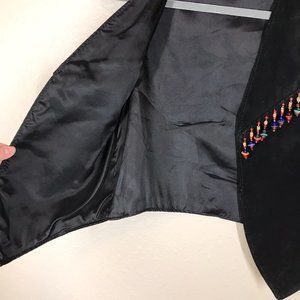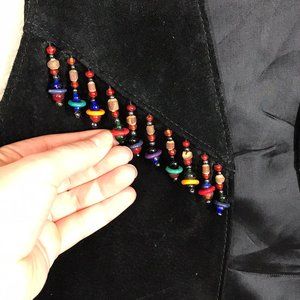 Vintage Black Leather Suede Beaded Vest, Size Medium