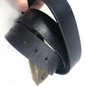 Vintage black leather belt with large statement solid brass train belt buckle by Baron Buckles from 1982. Belt leather is worn in and shows some creasing and one screw is tarnished a bit but belt and buckle is sturdy. Belt is size LG, can be unisex.