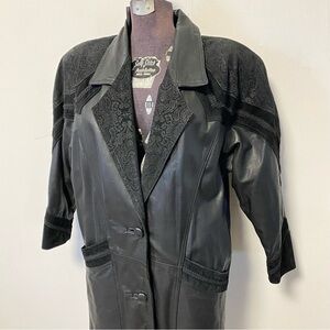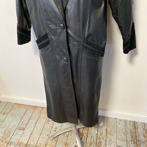 Vintage Black Leather Trench Coat Long Maxi Suede Jacket 80s Womens Medium