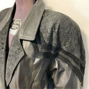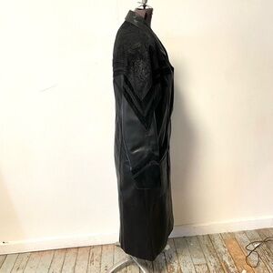 Vintage 80s Winlit Leather Trench Coat Long Maxi Matrix Coat Suede Paisley Embellished Womens Medium