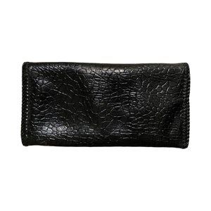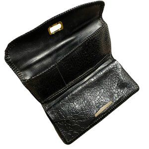 Vintage Black Leather Envelope Style Wallet in great condition. Pre-loved with embossed lizard style leather detailing and beautiful stitching. The best part of the wallet is the unique gold clasp, making it effortless to open and close the wallet.