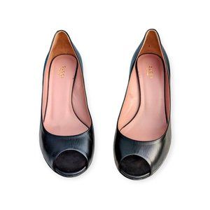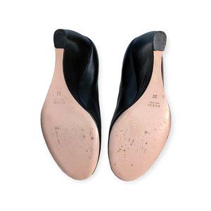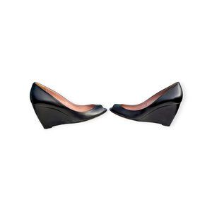 Vintage Black Leather Wedge Platform Heels Original Box Size 8