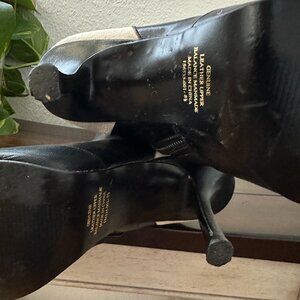 Vintage Black Leather White/Cream Suede w/Lace Detail Stiletto Boots