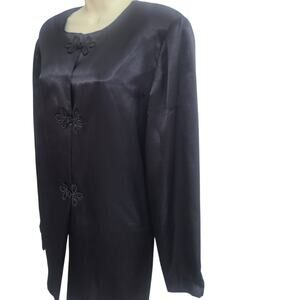 Vintage Black Leslie Fay Blouse Sz 12 Silky Asian Inspired Buttons