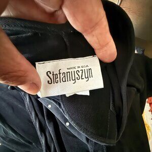 Vintage Black Long Sleeve Gown With Rhinestone Accents & Draped Back By Stefanys