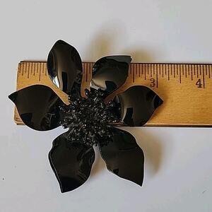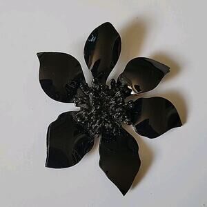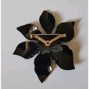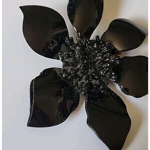 Vintage Black Lucite Sunflower Brooch Pin Boho Cottage Goth Mod Preppy Retro