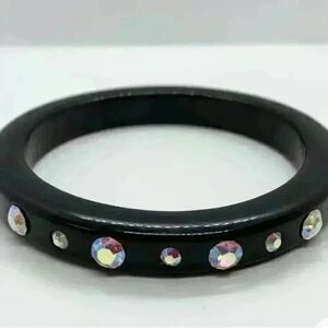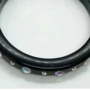 Vintage Black Lucite aurora borealis Rhinestone Chunky MODERNIST Bangle Bracelet