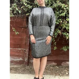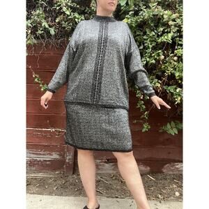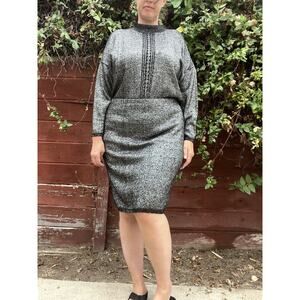 Vintage Black Lurex Silver Knit Sweater Skirt Set Size 2X