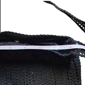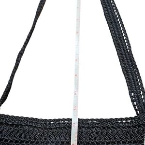 This vintage handmade black macrame purse is the perfect accessory for any boho or hippie look. The purse features beautiful fringe detailing and is made with crochet and knit materials. The purse is perfect for everyday use or for any summer festival or vacation trip. The purse is an original 1970s piece and has a unique hobo style.