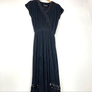 Vintage Black Maxi Dress Sequins Drop Waist