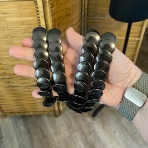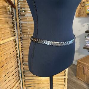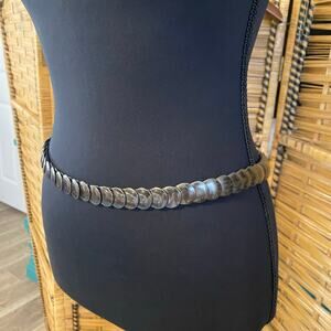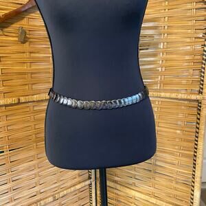 Vintage Black Metal Disc Stretch Belt Retro 70s 80s Mod Waist Cincher