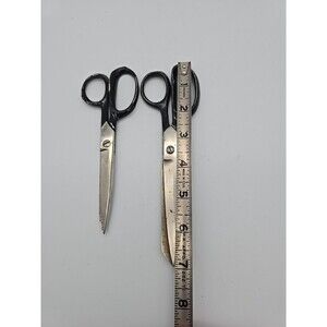 Vintage Black Metal Handle Scissors 6" Claus & 7" Unbranded Cuts Nicely