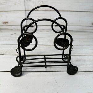Vintage Black Metal Kitchen Dining Napkin Holder With Leaf Design Home Decor