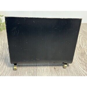 Vintage Black Metal Tole Ware Snack Bridge Trays With Matching Holder Caddy READ