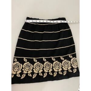 Vintage Black Metallic Gold Stripe Rose Floral Knit Stretchy Sweater Skirt Small