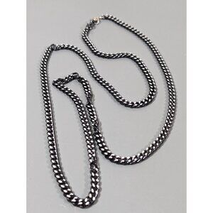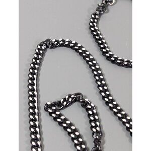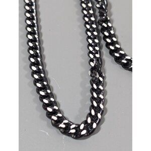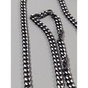 Vintage Black Metallic Silver Tone Curb Cuban Chain Link Necklace Long 38"