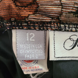 Luscious metallic gold & copper colors on black skirt. Exclusive to Saks Fifth Avenue and created by Evan Picone. Tagged Size 12. Union made in the USA.