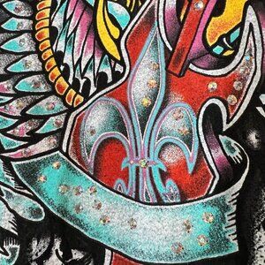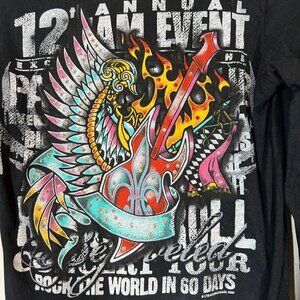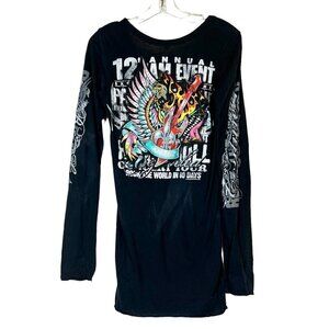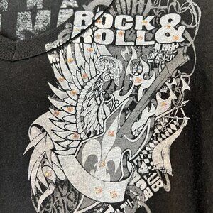 Vintage Black Mini Dress Tunic Top Rock Swarovski Rhinestone Retro Winged Guitar