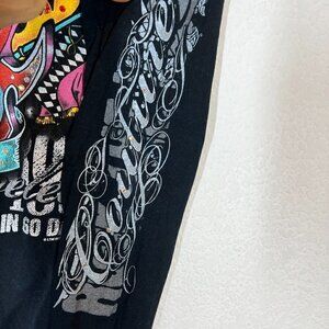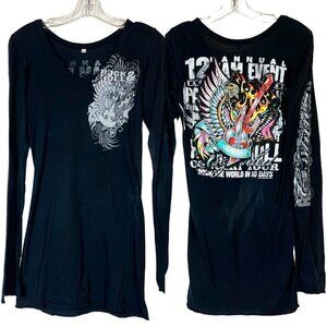 Rock and Roll Guitar Y2K Black Dress Tunic Long Sleeve Top Bling Swarovski Rhinestones V-Neck. Made in USA.