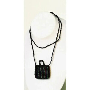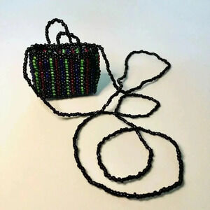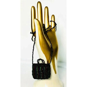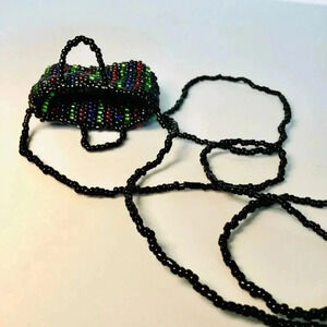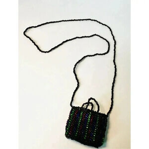 Vintage Black Mini Micro Beaded Double Handle Long Purse Crossbody Sling Bag