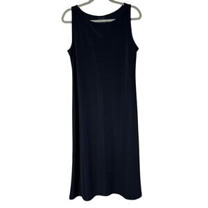 Vintage Black Modest Midi Dress SZ L Sleeveless Round Neck Travel Minimalist