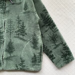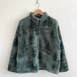 Black Mountain fleece, vintage outdoor jacket, tree print fleece, Made in USA fleece, 90s hiking jacket, cabin core style, mountain lodge fleece, forest print jacket, retro sherpa jacket, cozy nature fleece, men’s vintage outerwear, camping gear jacket, woodland print coat, plush zip fleece, retro outdoorsman look, soft green fleece