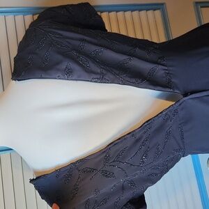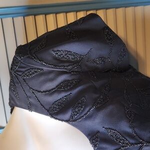 Vintage New Image gown, formal evening dress, size 13/14 dress, chiffon and polyester gown, beaded bodice gown, intricate floral beading, square neckline formal dress, short-sleeve beaded gown, floor-length