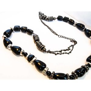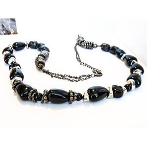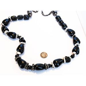 Chunky 1980 s black nugget necklace. length 32 - 38 inches with a width of 18 MM Secures with lobster clasp