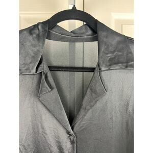 Vintage Black Nylon Button Front Collared Sheer Sleeve Blouse XL Goth Career