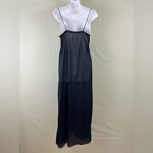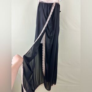 Vintage Black Nylon Lace Maxi Nightgown Slip Dress