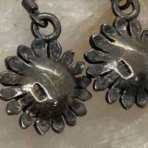 Vintage Black Onyx Flower Dangle Drop Earrings Sterling 925 Silver 4.4g Patina