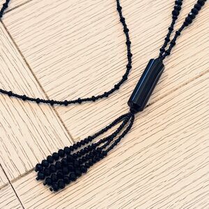 Vintage Black Onyx Tassel Necklace – 28" Natural Stone/Faceted Glass Beads