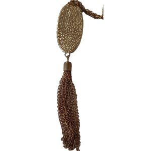 Antiqued gold tone 24 inch chain, pendant 2 inches, antiqued gold tone delicately designed chain tassel 2 inch
