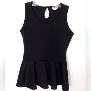 Vintage PEPLUM Top Size Large BLACK Figure Flattering Waistline with Flared Peplum Bottom Sleeveless Cocktail Blouse Business Semi-Formal Cocktail City