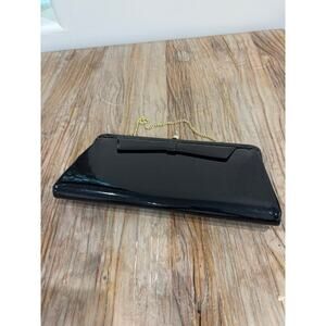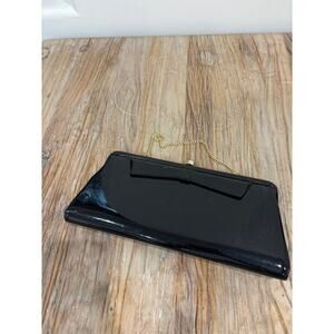 Vintage Black Patent Leather Clutch Purse with Gold Chain & Bow Accent
