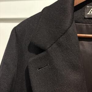 Vintage Black Pea Coat Women Large Wool Blend Andover Fabric USA 70s Loring