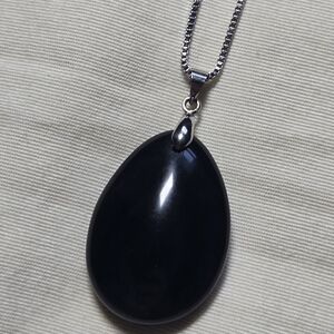 Vintage Black Pendant Necklace On 18" Silver Chain