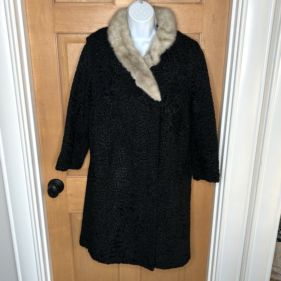 Vintage Black Persian Lamb Wool Coat with Fur Collar Measurements in Desc S/M