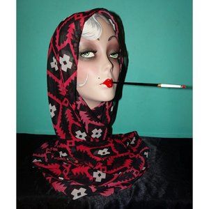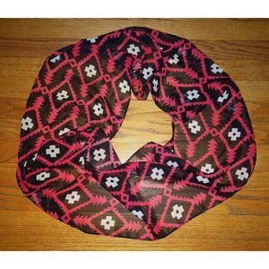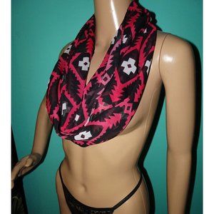 Vintage Black & Pink Southwest Motif Infinity Scarf semi sheer head wrap